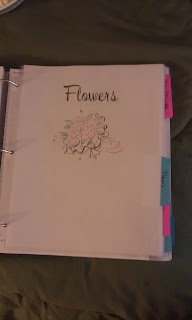 So as you can see this damn binder is really a 10lb binder! I have all of the wedding template sheets (there are 57) and I have been using photoshop to put together pictures of my dress and what not on one page so I don't use too much ink. I also have lined paper in each section to make notes. This thing is stuffed to the max! I'll write another blog on all of my other wedding choices as I go along but I hope that this helps some bride out there!